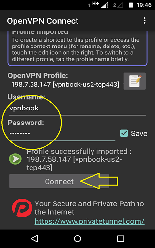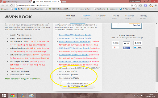 7- O nome de usuário sempre será “vpnbook” a senha mudará todas as semanas Verifique o site ‘vpnbook’ Aqui no final da página.