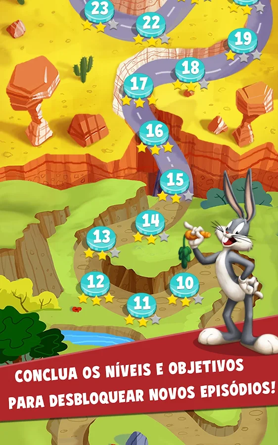 Conclua os objetivos dos níveis para desbloquear novos personagens Looney Tunes e novas áreas baseadas temáticas.