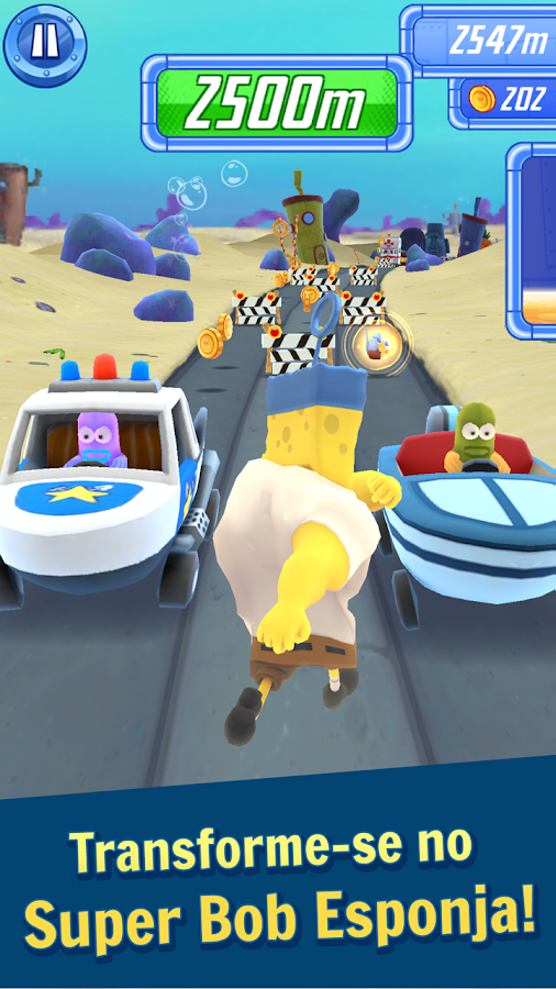 • Transforme-se em Super Bob Esponja e destrua todos os obstáculos!