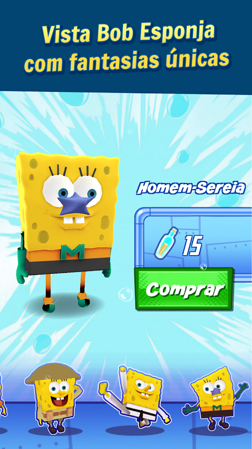 • Customize Bob Esponja com fantasias únicas.
