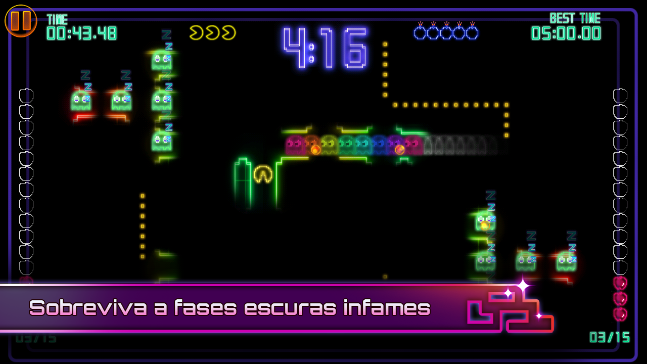 • Sobreviva a fases escuras infames para se tornar o Campeão PAC-MAN
